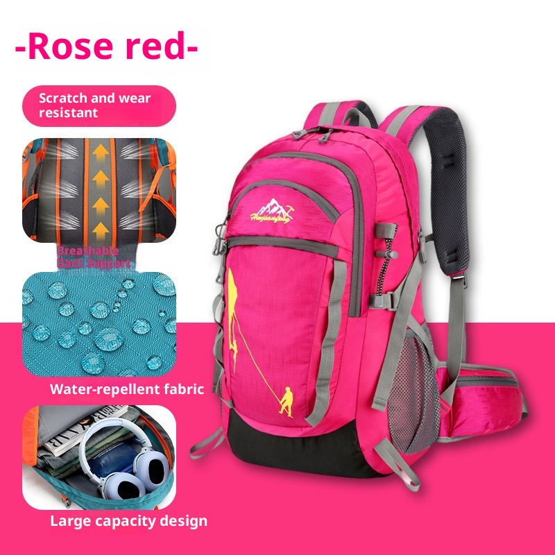 Brand:Outdoor Sharp Edge,Material:Nylon,Item Number:2301,Applicable Gender:Unisex / Suitable for both men and women,We have authorized private labels available:yes,Functionality:Breathable, waterproof, load-reducing,Color:Black, rose red, blue, green with orange,Capacity:40L,Year and season of release:Autumn 2023,Applicable Scenarios:Outdoor Sports,Pattern:Solid Color,The texture of the lining:Polyester,Backpacking System:Air Cushion Strap,Product Category:Hiking Backpack