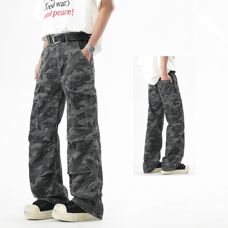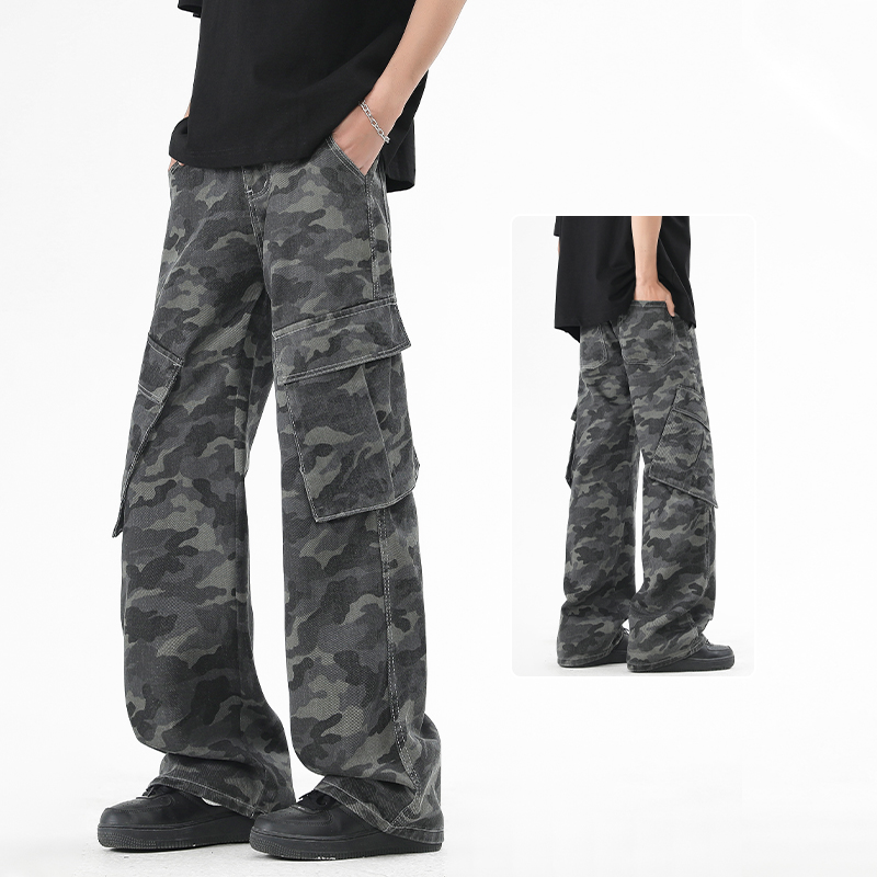 Kamuflažne kombinezone za muškarce, proljeće i jesen, novi trendi brend, američki High Street, mikro-povlačenje, ravne, široke duge hlače, proljeće i ljeto
