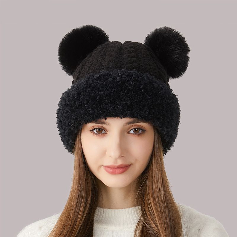 Cute Bear For Women Thickened Plush Warm Furry Beanie Autumn Winter Large Head Circumference Knitted Hat