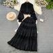 Ženska dvodijelna suknja visokog struka s izdubljenim čipkastim gornjim dijelom sa stojećim ovratnikom