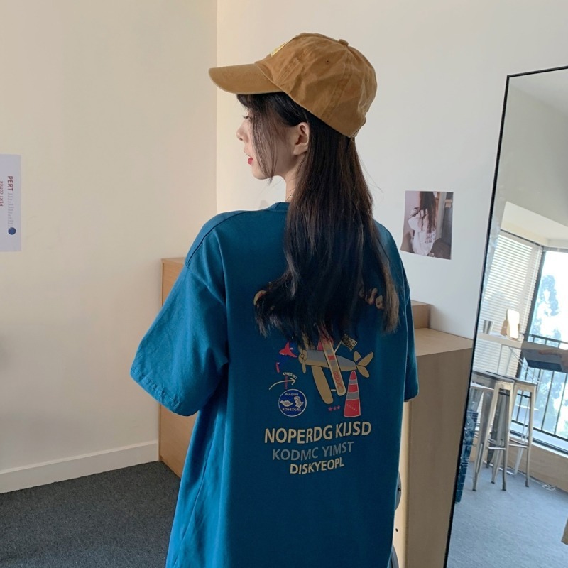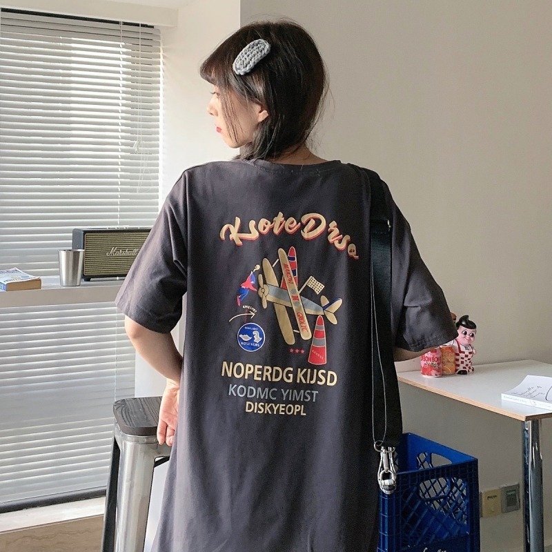 Nova ženska majica kratkih rukava srednje duljine s tiskom, široki kroj, za učenike, ljetna korejska verzija s prednjim i stražnjim tiskom