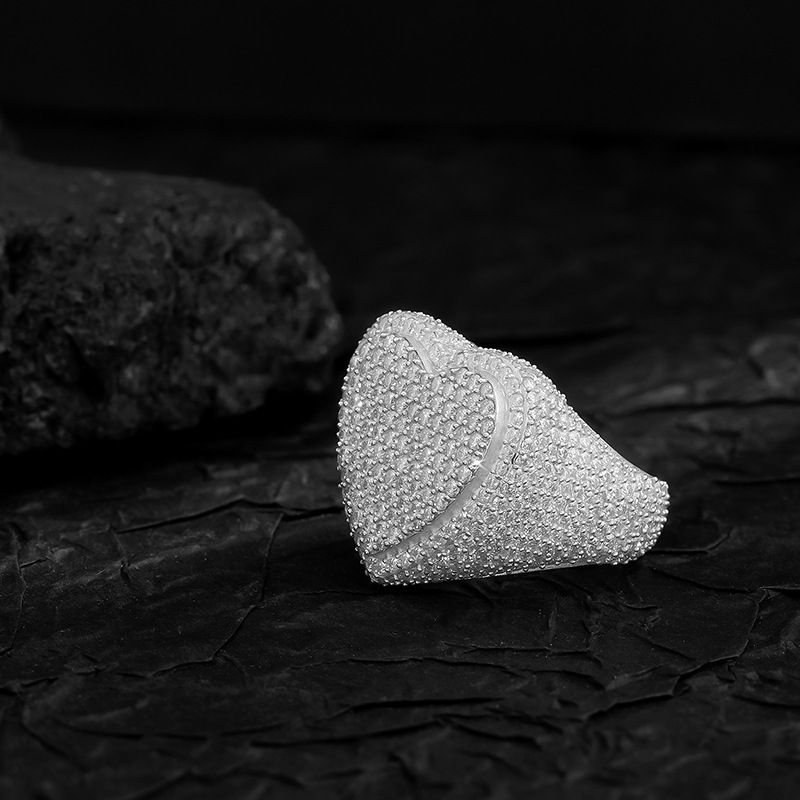 Heart-Shaped Hip-Hop For Men Micro-Paved Zircon Niche Design Trendy Punk Exaggerated Bold Ring