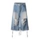 Men's Clothing Retro Ripped Hem Washed Distressed Denim Shorts Men's Streetwear Loose Versatile Pants
