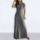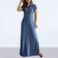 Denim Shirt Dress With Side Slits & Pockets – Oversized Collar A-Line Maxi Dress For Women (S-5XL, Gray/Light Blue/Black/Navy)