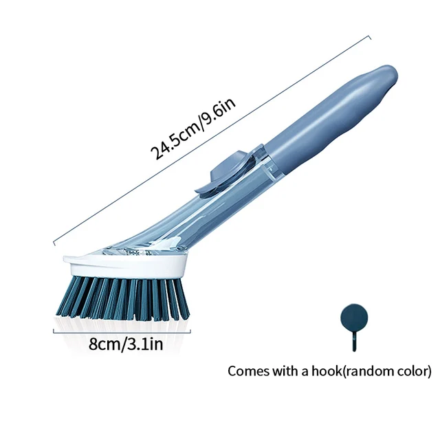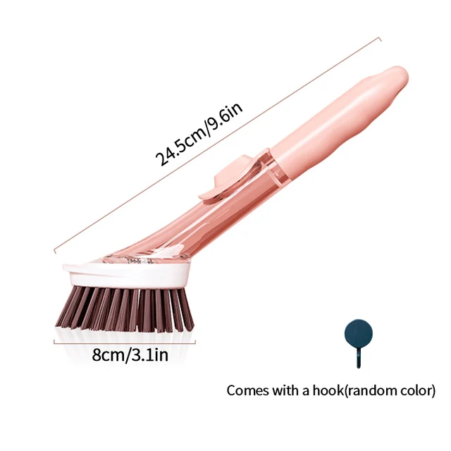 Liquid Dispensing: Kitchen scrub brush is equipped with a super-large-capacity dispenser, and dispenses clean liquid on demand with the light push of a button. No matter how it is placed, the silicone valve will not leak.
