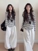 Korean Black Striped Sun Protection Long Sleeve T-Shirt For Women Early Autumn Lazy Loose Miu Style Air Conditioning