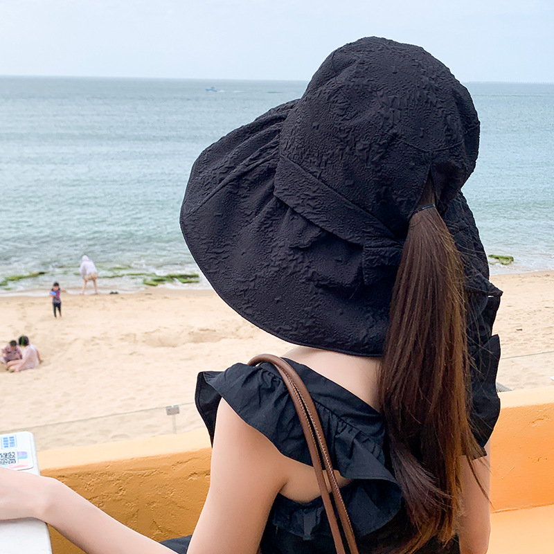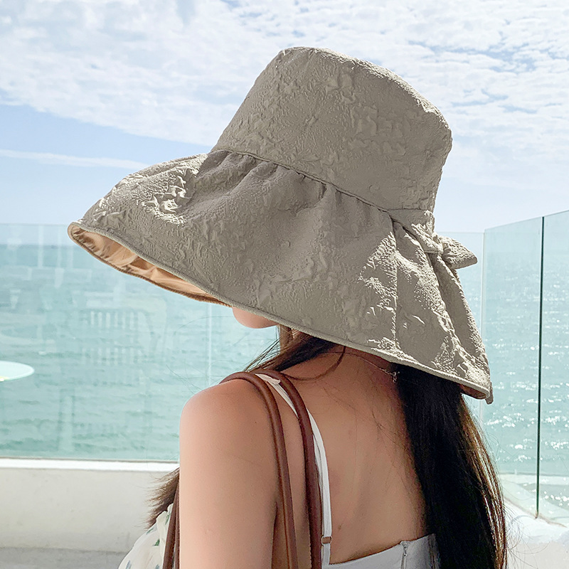 Korean Version of Women's Sunshade and Sun Protection Sun Hat with Large Edges Summer Outdoor UV Protection Bow Shaped Beach Fisherman Hat
