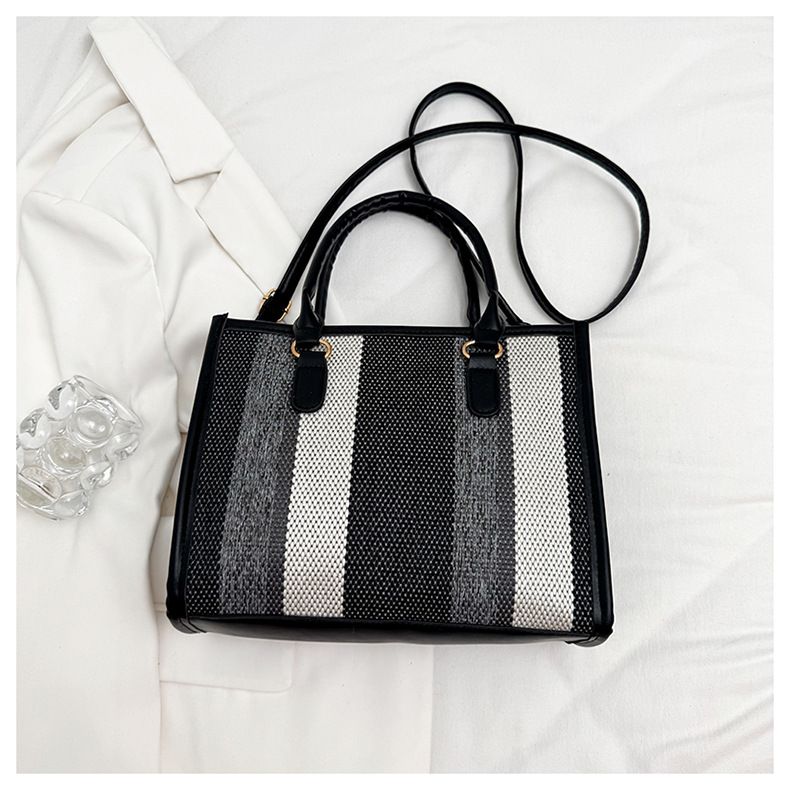 Large Capacity Handheld Tote For Women 2025 New European And American Trendy Canvas Color-Block Striped Single Shoulder