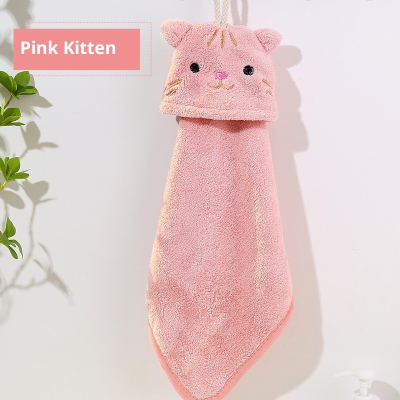 Lillian Wholesale Cartoon Cute Children's Kitchen Bathroom Washing Absorbent Coral Fleece Hanging Hand Towel