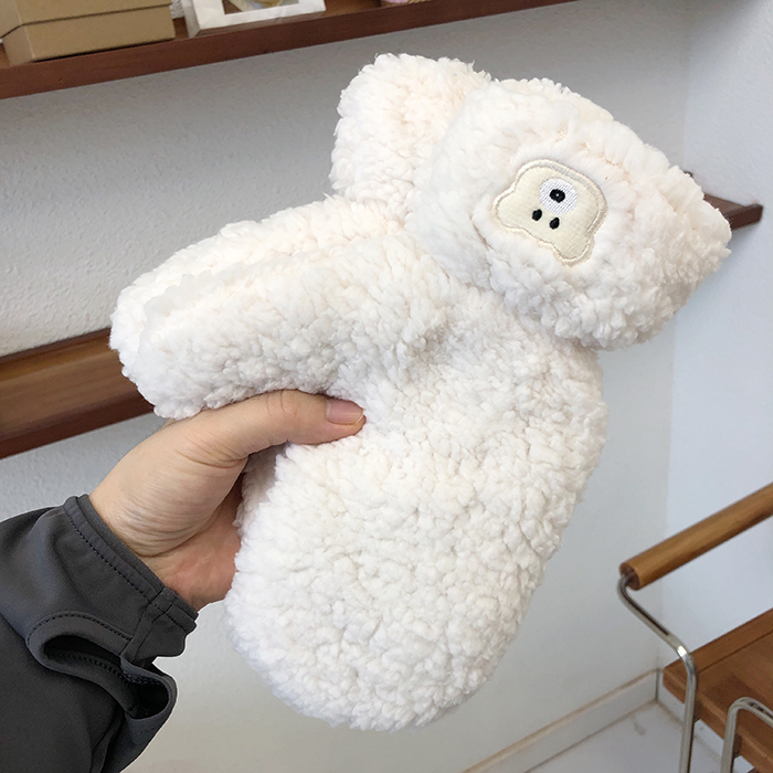 Plush Cute Little Bear Warm for Women's Winter Outdoor Cold Protection Double Layer Thickened Gloves