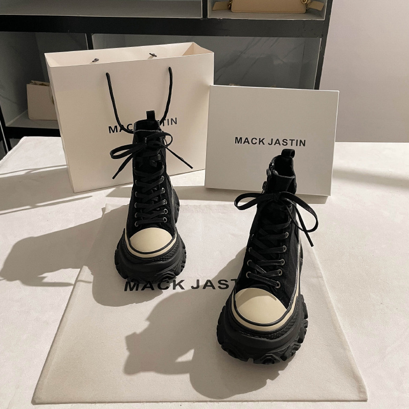 Luji genuine European station high-top denim canvas shoes women's 2024 spring new Martin boots thick-soled niche short boots