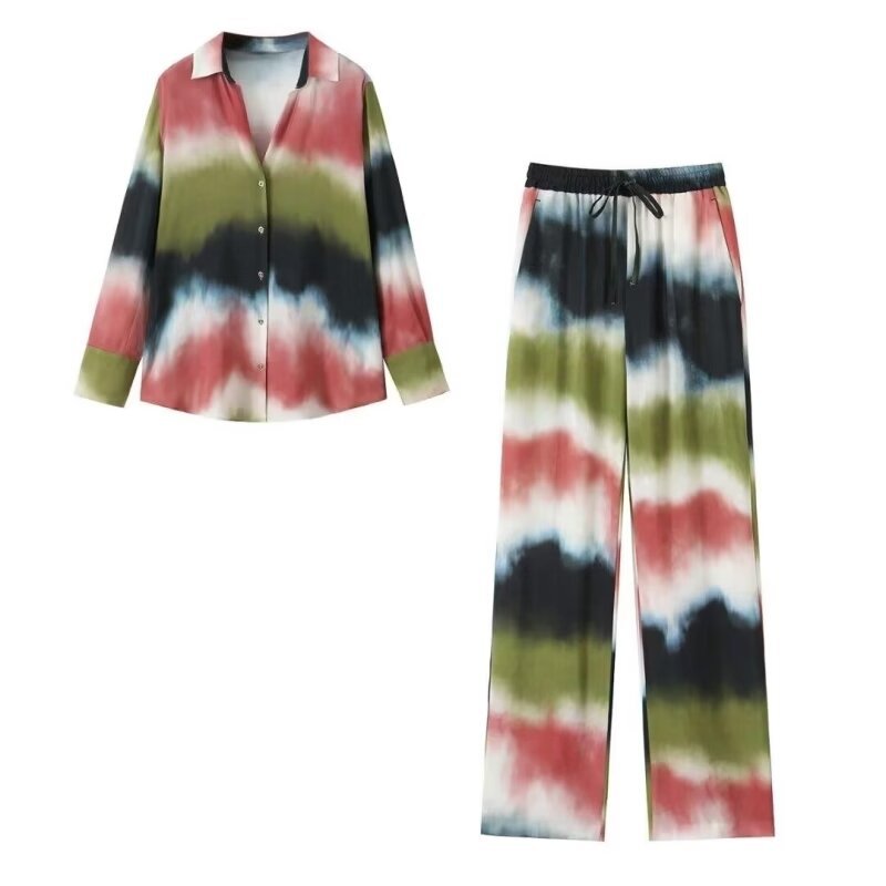 Women's 2024 Summer New Tie dye Printed Shirt and Printed Pants Set