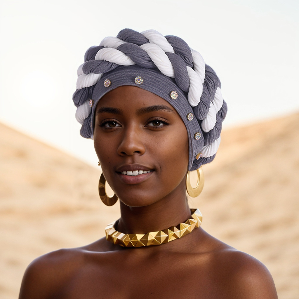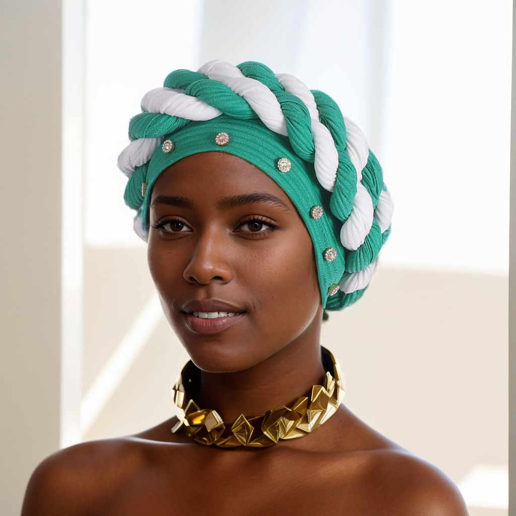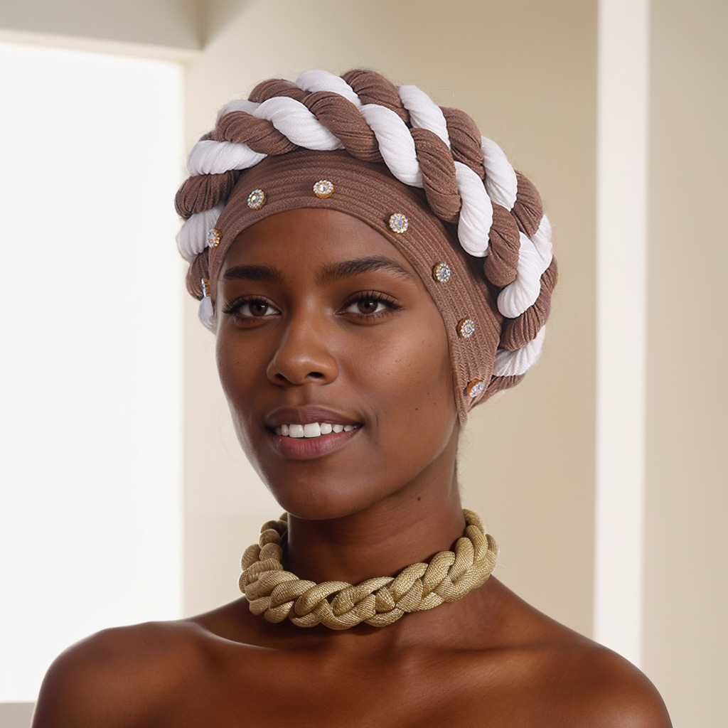 Novi čavli na rubu šešira, dijamantne trake u boji, pletena marama u dvije boje, šešir, pokrivalo za glavu.