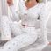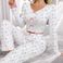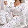 Ženska spavaćica Kućna odjeća s otisnutim uzorkom srca i V izrezom Ženska pidžama s dugim rukavima koja se može nositi kao gornja odjeća, dvodijelne hlače