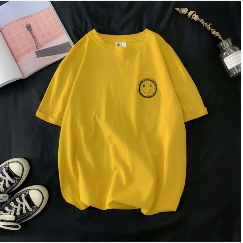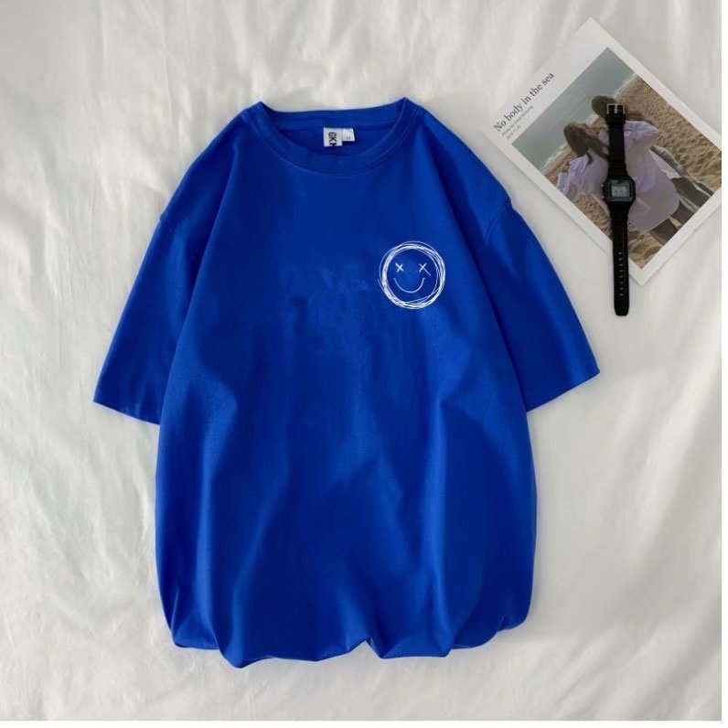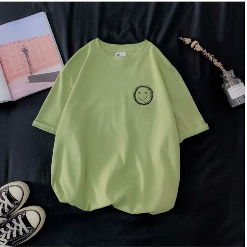Short sleeved T-shirt for men's 2022 summer new loose round neck smiling face Korean version top trendy Instagram casual T-shirt