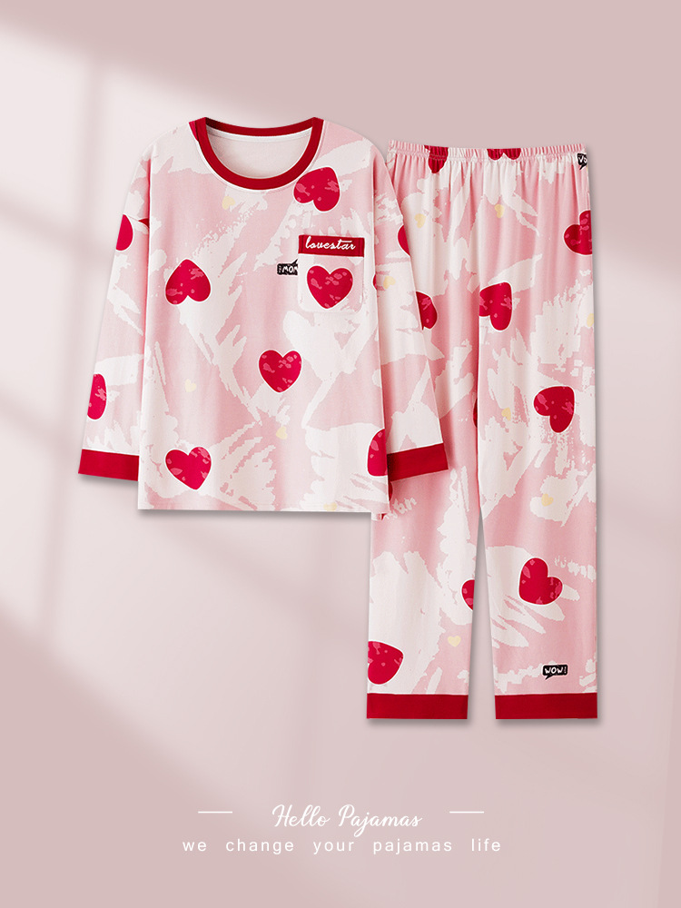 Pajamas for women in spring and autumn, pure cotton long sleeved, middle-aged mother's home clothes, plus fat and plus size, can be worn outside set, 220 pounds 5XL