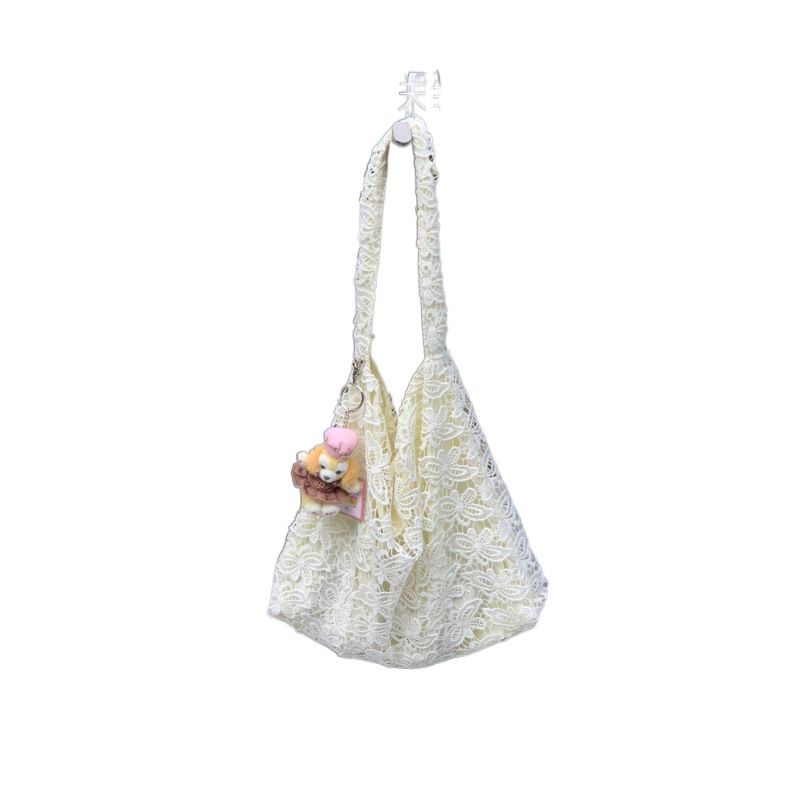 Zhao Lusi's same water-soluble lace tote bag, summer gentle fairy large capacity shoulder bag, countryside style handbag