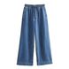 Women's Clothing Street Fashion Straight Pants Suit Tops Denim Casual Wear