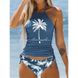 Women's Sexy Bikini Set - Tropical Palm Print With Adjustable Ties High Waisted Bottom For Tummy Control Plus Size Swimwear For Beach & Pool