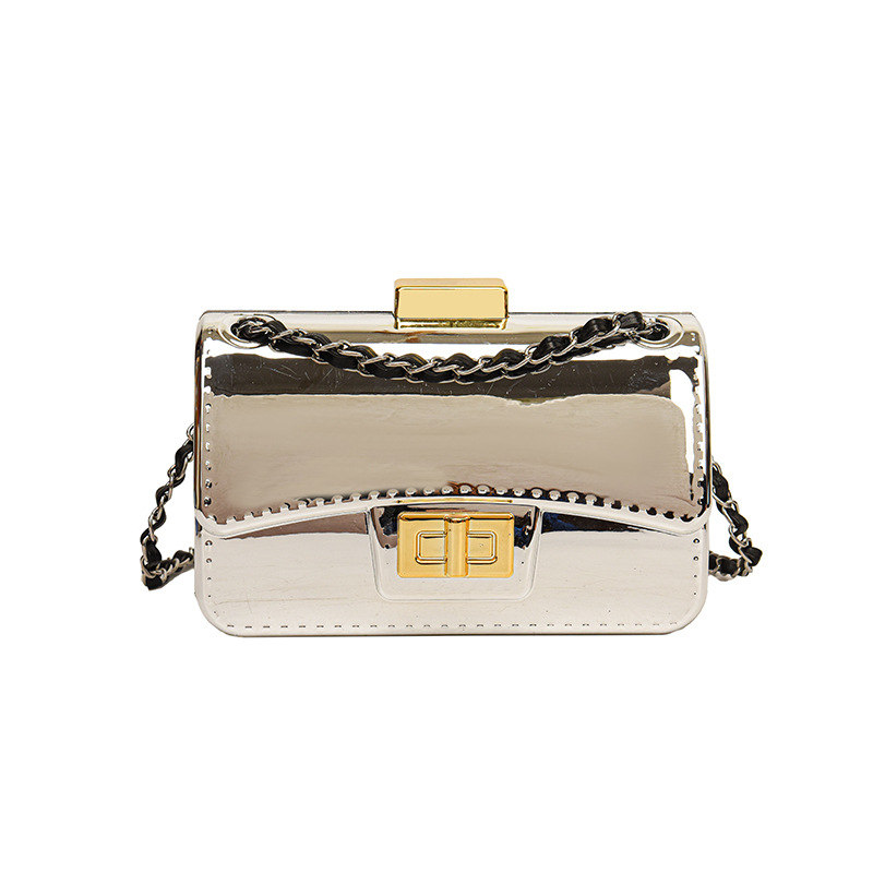 2024 New Solid Color Simple Fashion Casual Women's Bright Chain Laser Small Square Single Shoulder Crossbody Bag